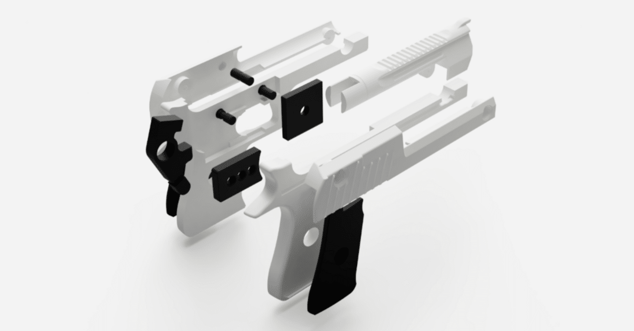 3Dプリンターで出力後、組み立てたものです。見た目だけは最後まで作ったのですが、弾がまともに飛ばない状態。製作期間が長かったのもありますが、完全に飽きられて置物になってます。