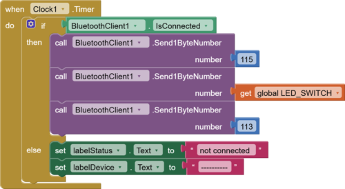 チェックのためにスタート/エンドで「115」と「113」を送信してます。アスキーコードで「S」[Q]だったかな。。スマホ側はこんな感じです。MIT APP Inventor2ですが10年前くらいと日本語での情報量があまり変わってない感じですね。需要が少ないのかな?よく生き残っててくれました。